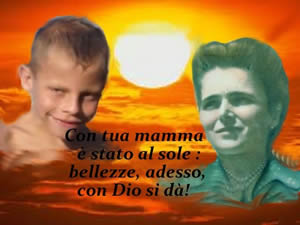 E qui di seguito la frase in cui il piccolo dice ai suoi genitori di trovarsi nel sole di Dio con la mamma di Danila, Alide, nella foto a destra di chi guarda, scomparsa poche settimane fa.